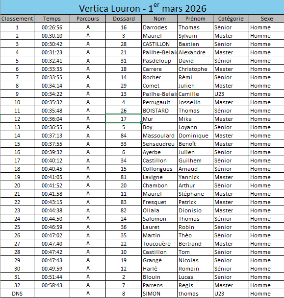 Merci à tous les participants de cette Vertica Louron 2026. Une cinquantaine de participants entre la course et la montée conviviale, une météo parfaite, la pleine lune bien présente ! Que demander de plus !